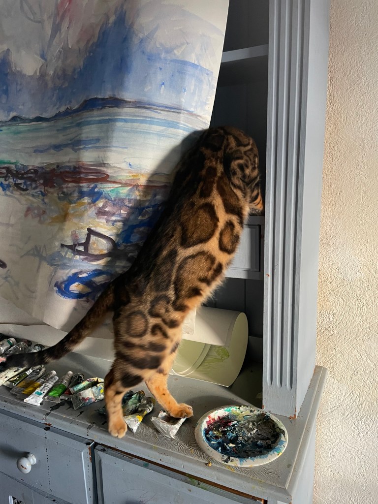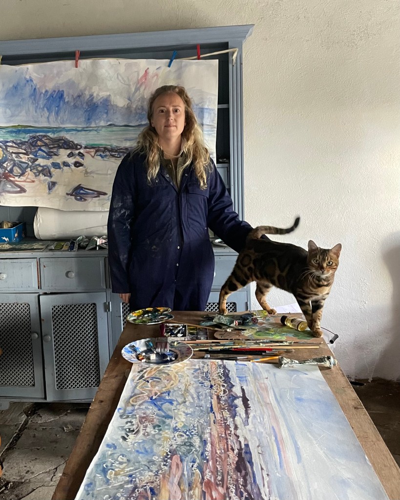 The occasional sheep wondering in, and the company of studio cat ‘Whiskers’ only add to the otherworldly feel.